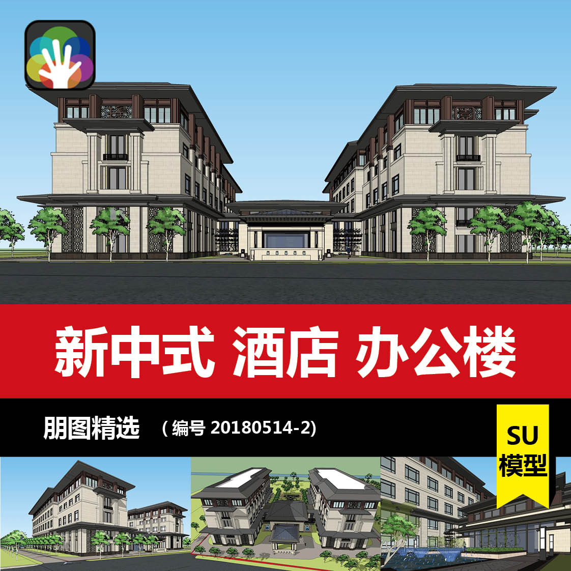 热卖推荐su模型_新中式新古典高层住宅底商沿街商业建筑设计素材