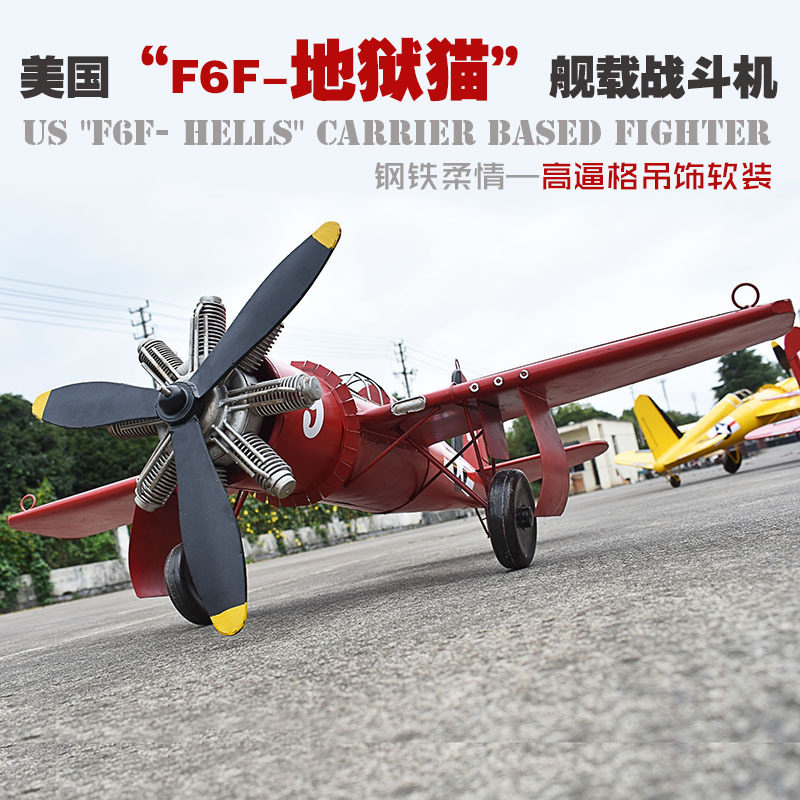 欧式复古铁艺飞机模型吊意金属战斗机道具摆件创意软装影视物料热门设计联盟服务商