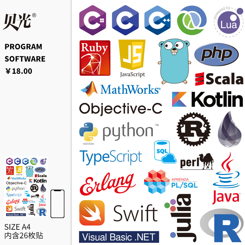 程序编程软件图标防水笔记本行李箱贴纸苹果电脑手机装饰贴不留胶热门设计联盟服务商