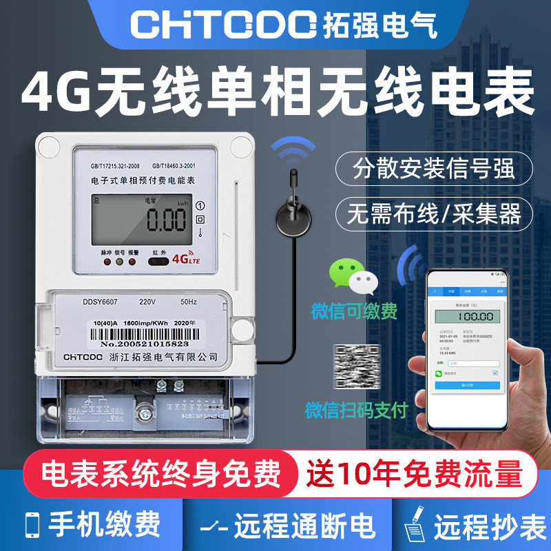智能预付费电表家用出租房无线4G手机充值单相三相远程抄表电表热门设计联盟服务商