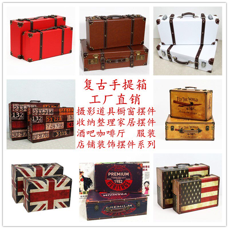 复古道具手提箱整理储物箱木箱子皮箱行李箱欧式婚纱摄影陈列摆件热门设计联盟服务商