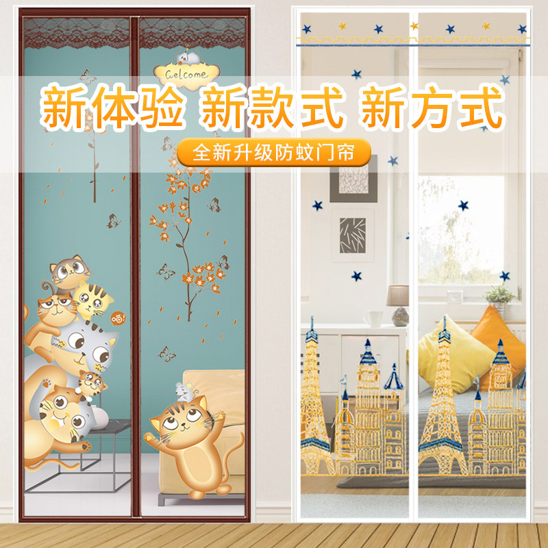 卡通款防蚊门帘磁性纱门家用免打孔夏季高档魔术贴防蚊加密纱窗网热门设计联盟服务商