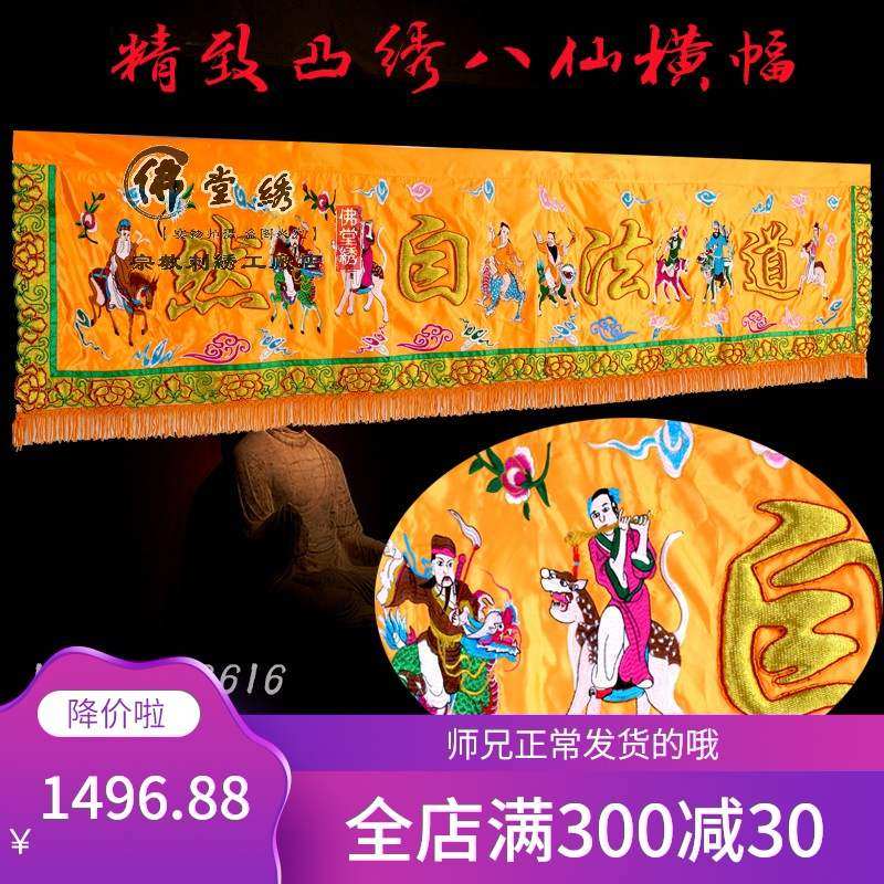 道教用品横幅3米横彩八仙松鹤横围横幡横门眉/道法自然/道坛绣品热门设计联盟服务商