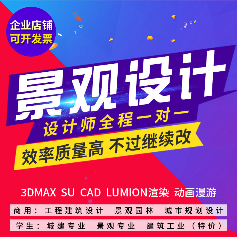 景观建筑设计代做3D效果图SU建模渲染室内方案CAD代画建筑施工图热门设计联盟服务商