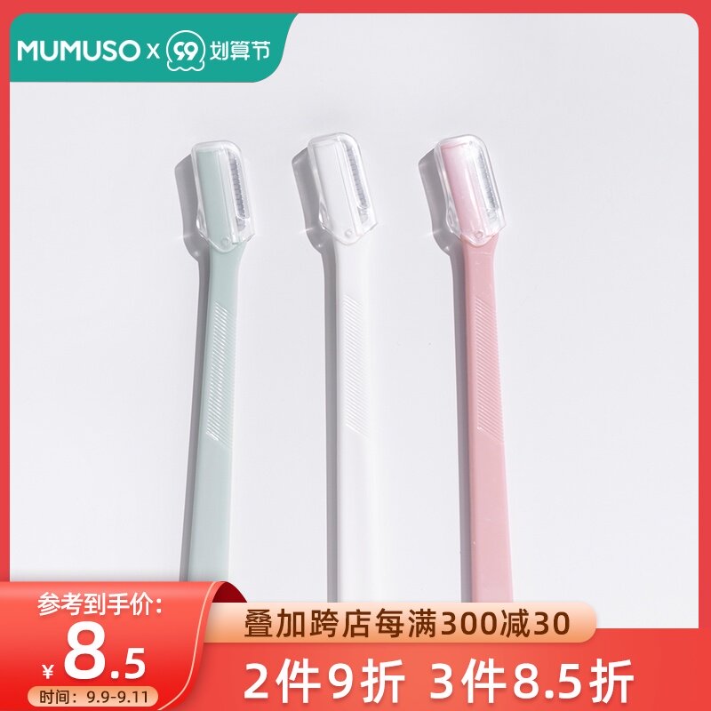 mumuso/木槿生活帖色3支装套装男士女士新手初学者安全修眉刀热门设计联盟服务商