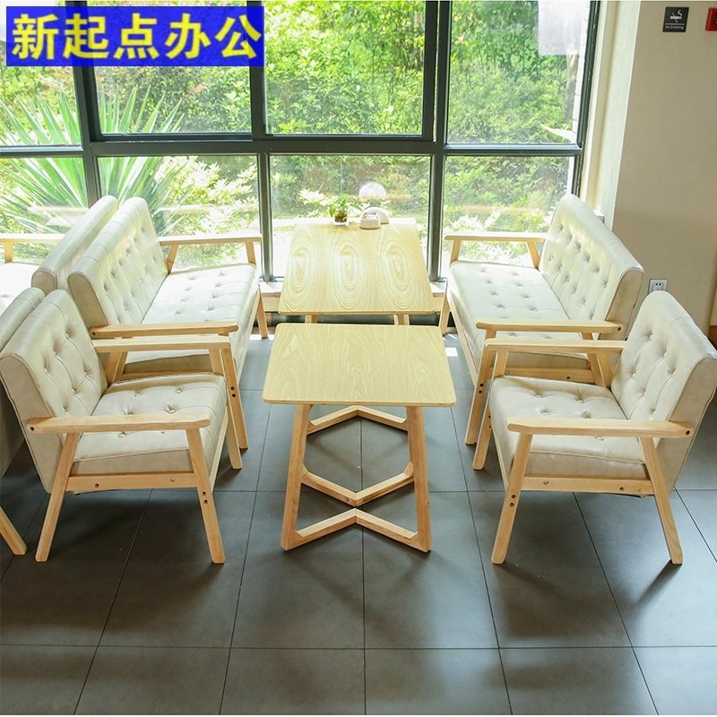 奶茶店桌椅组合简约餐饮卡座办公洽谈双人甜品餐厅清吧实木皮沙发热门设计联盟服务商