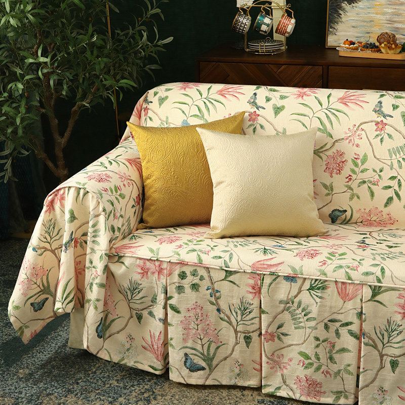 数码印花美式花鸟沙发巾垫套全盖布防尘罩布艺欧式现代四季可用热门设计联盟服务商